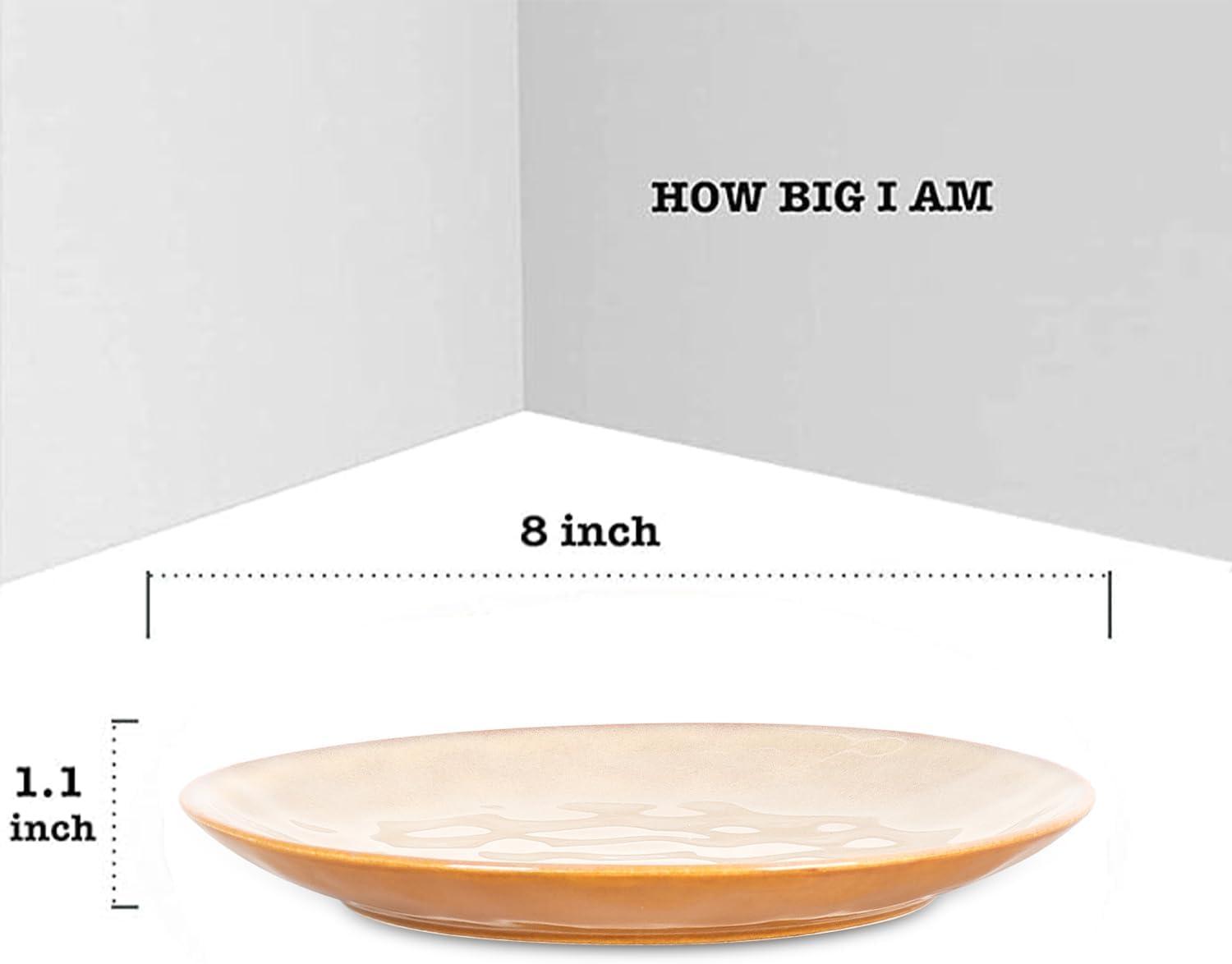vicrays Ceramic Round Plates Set of 6 – Porcelain 8 inch Dinner Plates for Salad Dessert Appetizer Bread – Microwave Oven and Dishwasher Safe – Blue(Beige)