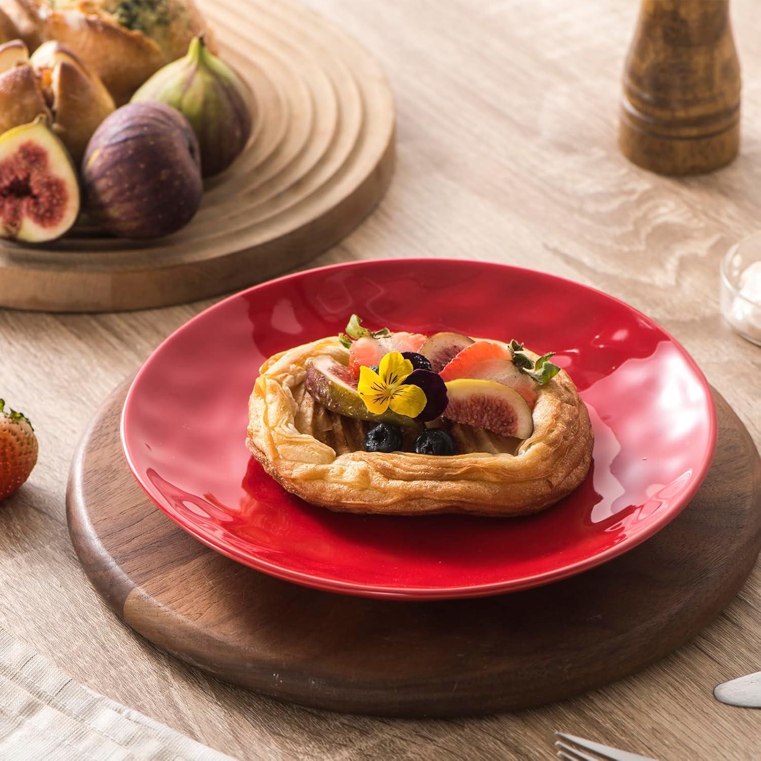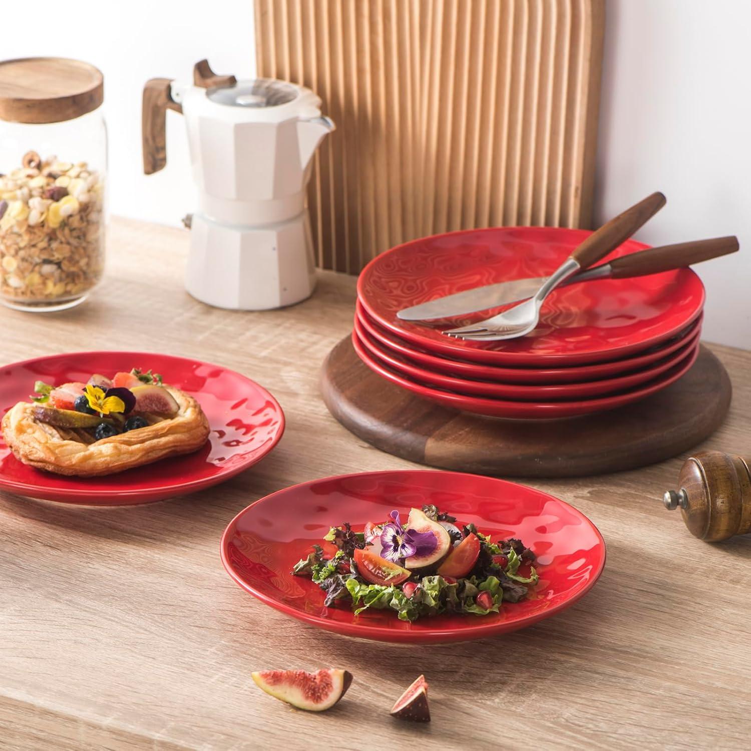 vicrays Ceramic Round Plates Set of 6 – Porcelain 8 inch Dinner Plates for Salad Dessert Appetizer Bread – Microwave Oven and Dishwasher Safe – Blue(Red)